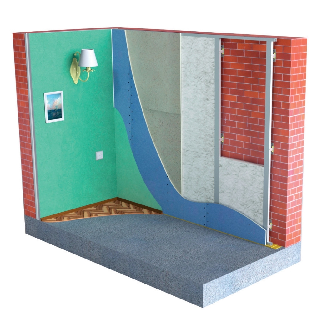 De perete cu ajutorul birdelor reglabile vibroizolante este atașată carcasa din profil metalic cu grosimea de 0,6mm. Locurile de contact a profilului cu perimetrul spațiului și cu listurile fonoizolante se încleie cu banda etanșantă. Spațiul intern este umplut cu vata fonoabsorbantă. Pe carcasă sunt montate panourile fonoizolante, care sunt închise cu listuri de gips-carton fonoizolant.